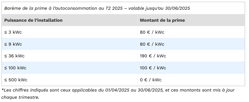 Versée par EDF OA, la prime à l’autoconsommation permet aux particuliers et entreprises de couvrir une partie des frais liés à l’installation de panneaux solaires. Également connue sous le nom de prime à l’investissement, elle est spécifiquement allouée à aux projets solaires en toiture qui font le choix de l’autoconsommation avec vente du surplus.